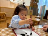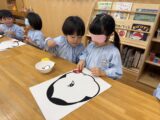 新しい年のはじまりに、園ではお正月ならではのあそびを楽しみました。乳児クラスでは、初めての書初めに挑戦!小さな手で筆を握り、真剣な表情で紙に向かう姿がとても印象的でした。筆の感触や絵具のにおいに興味津々で、それぞれの“はじめて”を楽しんでいました。福笑いでは、できあがったお顔に「なんだかへんなおかお~!」と笑い声があふれ、にぎやかな時間になりました。