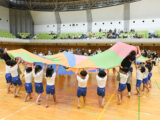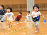 年長児のカラーガードからスタート!堂々と演技する姿に大きな拍手が送られました♪他にもパラバルーンやかけっこ、大縄跳び等、元気いっぱい体を動かす子ども達からは笑顔があふれていました!また今年度は保護者競技も行い白熱した戦いが繰り広げられましたよ!乳児クラスの子ども達も保護者の方と一緒に競技に参加し笑顔あふれるひとときとなりました♪