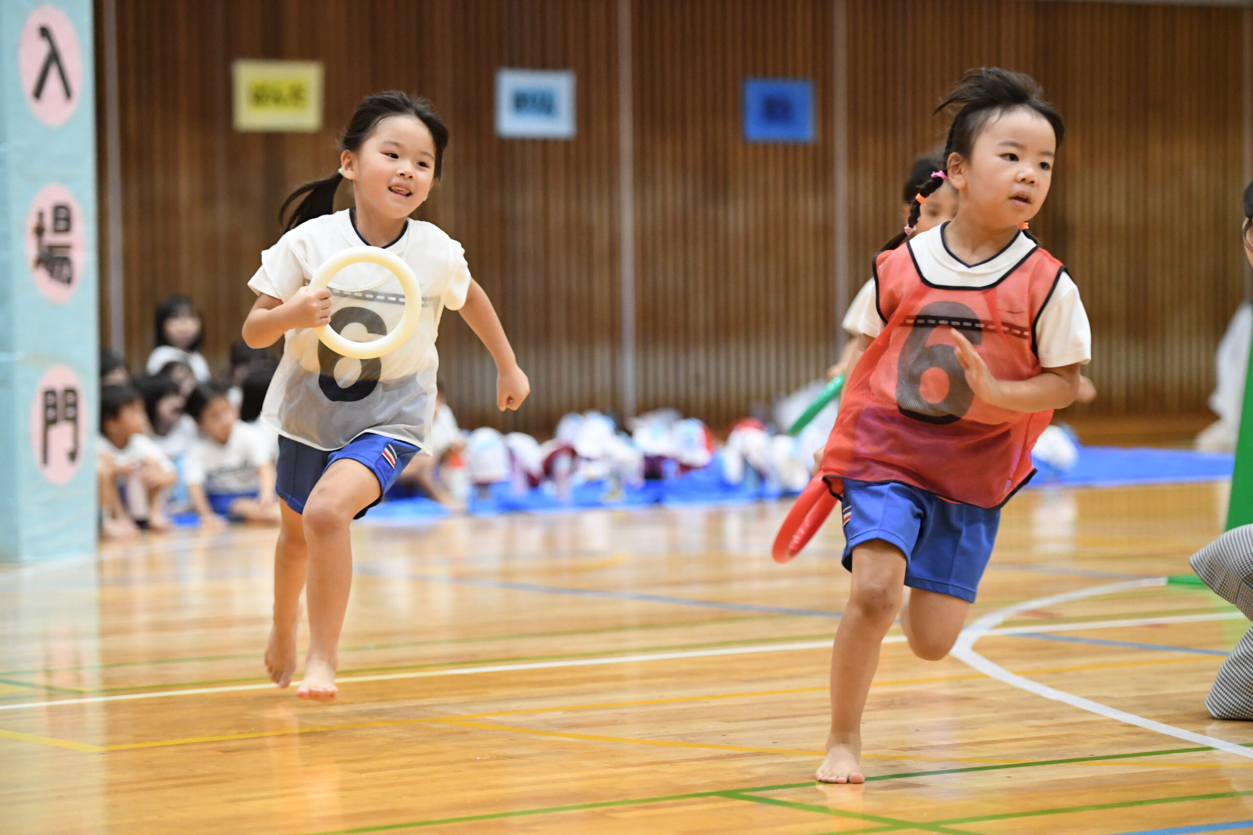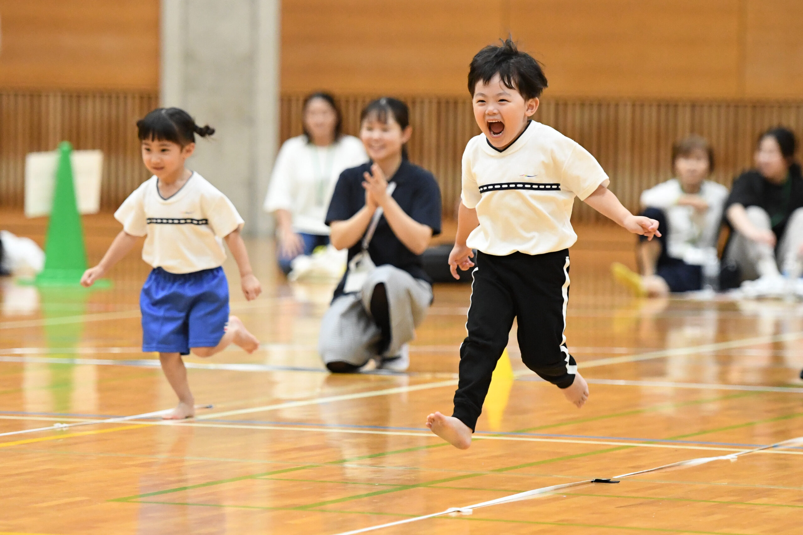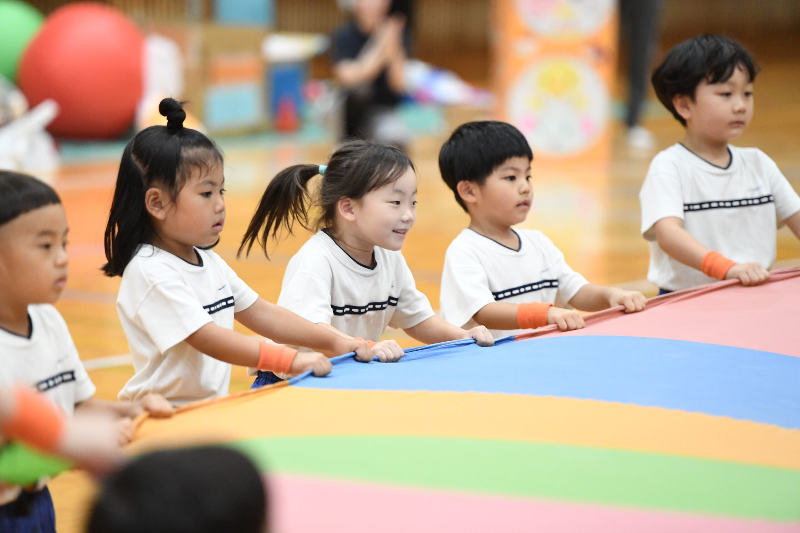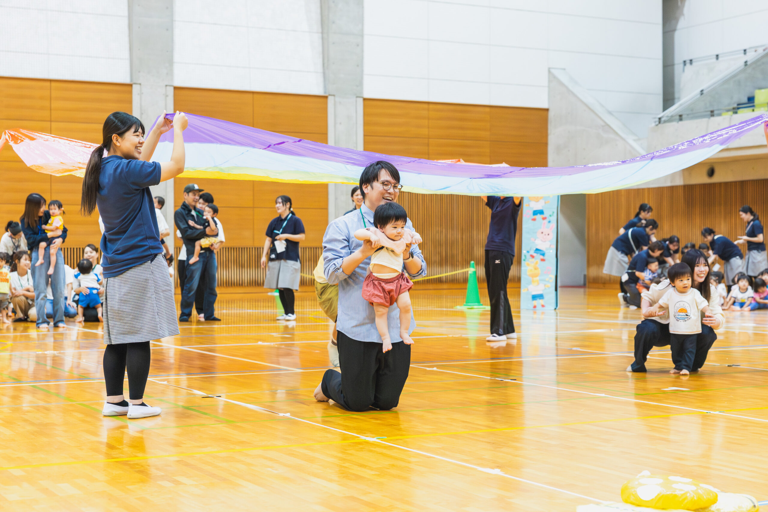 年長児のカラーガードからスタート!堂々と演技する姿に大きな拍手が送られました♪他にもパラバルーンやかけっこ、大縄跳び等、元気いっぱい体を動かす子ども達からは笑顔があふれていました!また今年度は保護者競技も行い白熱した戦いが繰り広げられましたよ!乳児クラスの子ども達も保護者の方と一緒に競技に参加し笑顔あふれるひとときとなりました♪