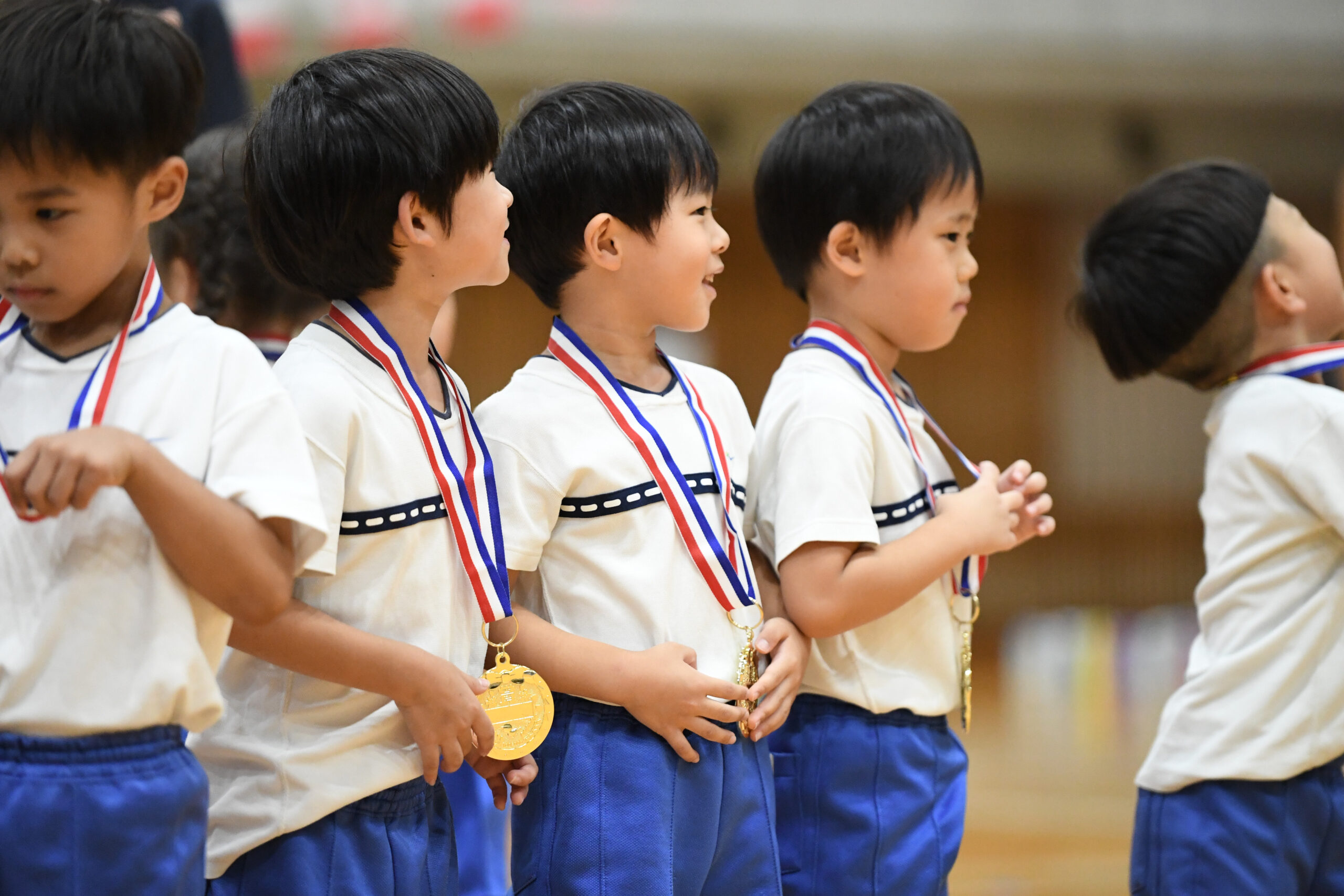 年長児にとって最後の運動会となりました。頑張った証の金メダルが授与され、子ども達は大喜びでした♪