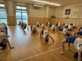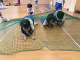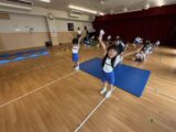 5才児クラスでは、運動会での表現体操でのブリッジの練習中。最初はなかなか腕が伸ばせずすぐに倒れてしまっていたみんなですが、今ではしっかりと支えて止まれるようになりました。