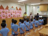 保育士が撮影した楽しい園生活のスナップ写真です。元気いっぱいの子どもたちの笑顔をご覧下さい。 ※クリックすると写真が拡大します。 敬老ふれあい会 2018.09.13 敬老の日にちなんで、3~5才児クラスの祖父母の方に来ていただきました。 3歳児は一緒に「黒蜜きなこ団子」のクッキングをしたり、4・5才児は製作で「紙コップけん玉」作って遊びました!優しいおじいちゃん・おばあちゃんとたくさんお話をしたり、けん玉がのコツを教えて頂いたりし、大喜びの子ども達でした♪