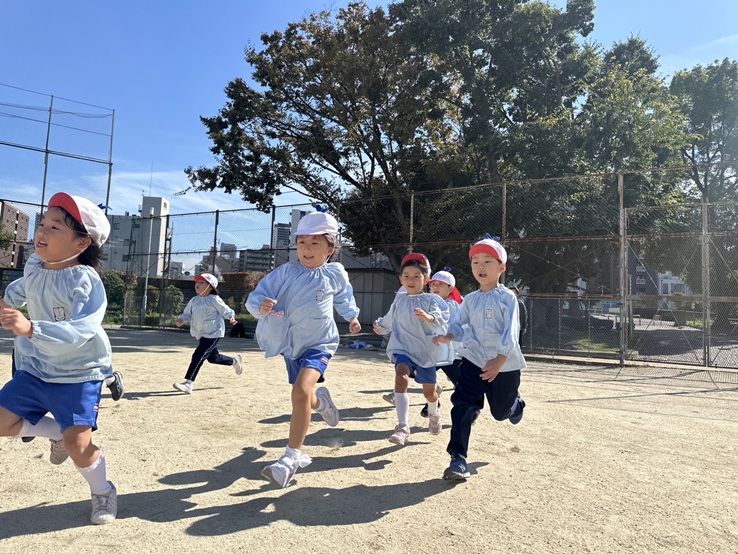 5才クラスでは、公園でドッチボールをしたり、大縄跳び、鬼ごっこなどをする中でそれぞれの思いを出し合い、友達と一緒に遊びを進め、楽しむ姿が見られます。